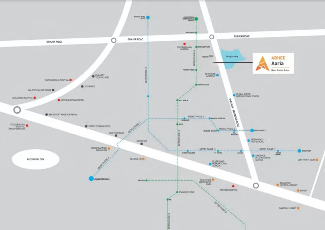 Abhee Aaria is strategically located to offer excellent connectivity through major roads, highways, and public transport, ensuring smooth commuting. The project is close to IT and business hubs, providing easy access for working professionals, and is near reputed schools, colleges, and healthcare facilities. Residents also have shopping centers, restaurants, and entertainment options within easy reach. Surrounded by a peaceful and green environment, Abhee Aaria offers a serene lifestyle while being situated in a developing area with strong potential for property value appreciation.