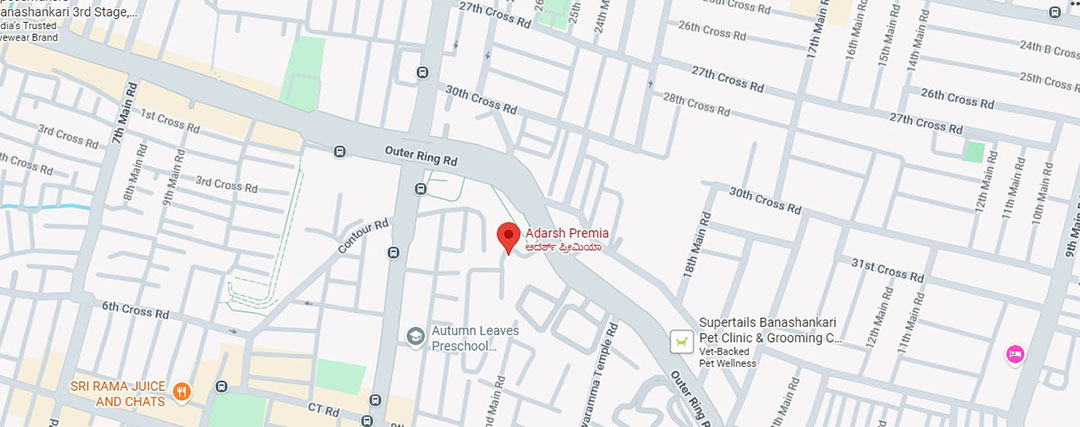 Adarsh Premia is strategically located in Banashankari, South Bangalore, providing excellent connectivity to major roads, Metro lines, and key city hubs. The project is close to reputed schools, hospitals, shopping centres, and entertainment options, ensuring everyday conveniences are within easy reach. With well-developed infrastructure, wide roads, and proximity to essential services, the location offers a balanced lifestyle that combines urban accessibility with a peaceful residential environment. Its strategic positioning also promises strong long-term value, making it an attractive choice for families seeking both convenience and a high-quality living experience.