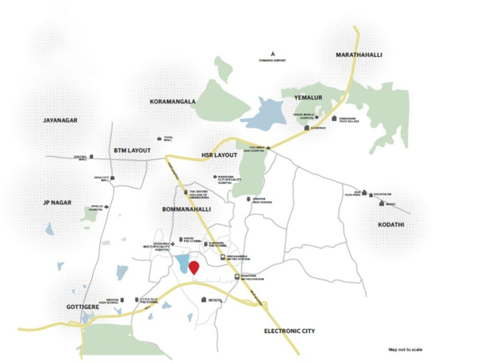 Situated in Begur, South Bangalore, Assetz Canvas & Cove enjoys excellent connectivity to major IT hubs, commercial centers, and educational institutions. The area is well-connected via Hosur Road, Outer Ring Road, and NICE Road, making commuting to key parts of Bangalore convenient. Residents have easy access to hospitals, shopping malls, restaurants, and entertainment options, while the neighborhood maintains a calm and green environment. With ongoing development and improving infrastructure, Begur offers a balanced lifestyle combining urban convenience with peaceful living.