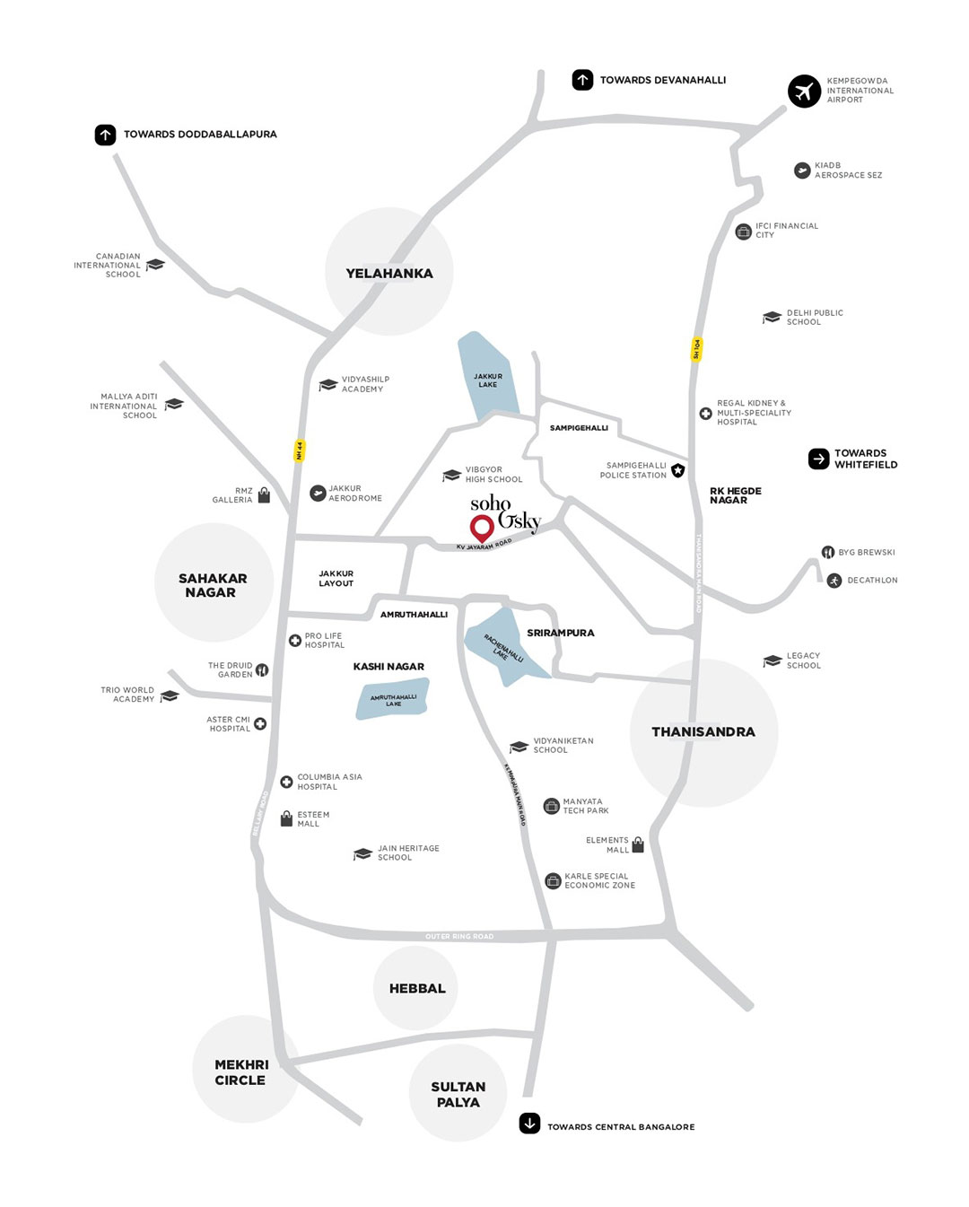 Assetz Soho & Sky enjoys a prime location with excellent connectivity to major roads and nearby IT hubs. Educational institutions, hospitals, and shopping centers are within easy reach, ensuring convenience for residents. The area combines a peaceful residential environment with proximity to the city’s key amenities.