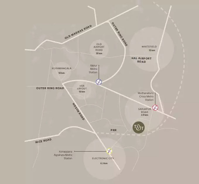 Assetz Tree & Tandem is strategically located on Sarjapur Road, Bangalore, offering excellent connectivity to major IT hubs like Electronic City, Whitefield, and Outer Ring Road (ORR). The area is well-served by schools, hospitals, retail centers, and entertainment options, making daily life convenient. Proximity to upcoming infrastructure projects and business districts adds to its appeal, while the green and serene surroundings provide a peaceful residential environment away from city congestion.
