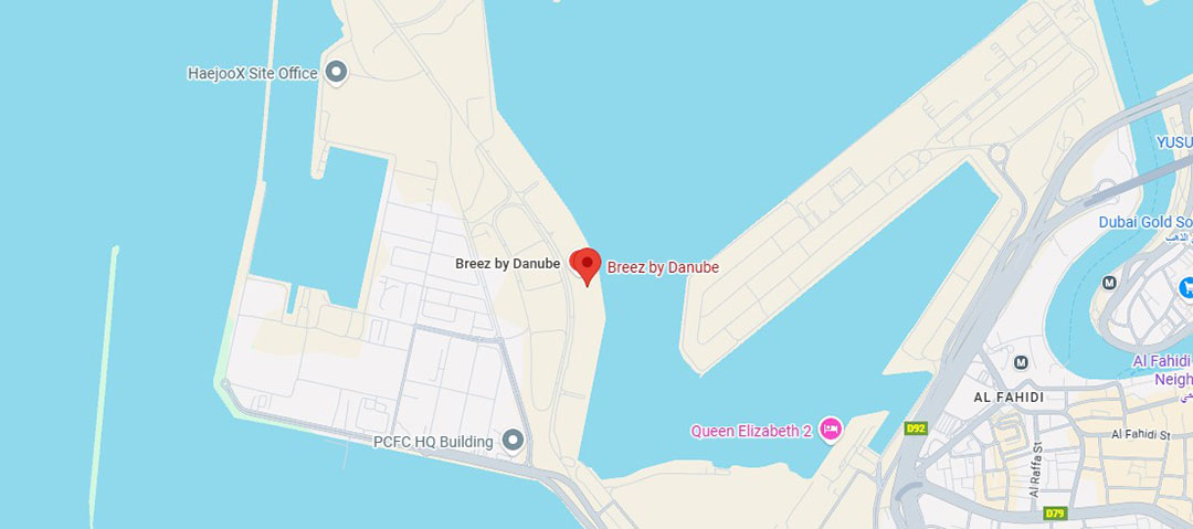 Breez by Danube is strategically located in Dubai Maritime City, a prime waterfront community in Dubai. The project offers excellent connectivity to major parts of the city, including Business Bay, Dubai Marina, Jumeirah Beach, and Downtown Dubai, making it convenient for work, leisure, and lifestyle needs.