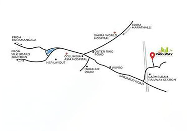 DSR Parkway enjoys a prime location that combines convenience with a serene living environment. It is well-connected to major roads and highways, ensuring easy access to key areas of Bengaluru, including prominent IT hubs like Electronic City. The neighborhood hosts reputed schools and colleges, making it ideal for families, while quality hospitals and healthcare facilities are within close reach. Residents also benefit from nearby shopping malls, restaurants, and leisure spots. With access to public transport options and a calm, green environment away from city congestion, DSR Parkway offers the perfect blend of connectivity, comfort, and lifestyle.