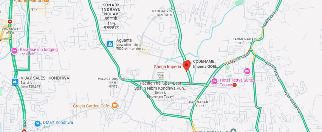 Ganga Imperia is strategically located in NIBM Annex, South Pune, offering excellent connectivity and convenience. The project is close to major arterial roads, including NIBM Road and the Pune-Solapur Highway, providing smooth access to key areas such as Kalyani Nagar, Magarpatta, Hadapsar, and the Pune airport.