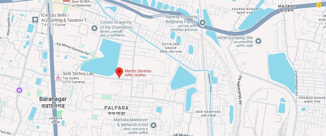 Merlin Serenia is strategically located on BT Road in Baranagar, North Kolkata, offering excellent connectivity to key parts of the city. The location provides smooth access to central Kolkata, Howrah, and major commercial areas through well-developed road networks. Proximity to BT Road and upcoming metro connectivity enhances daily commuting convenience.