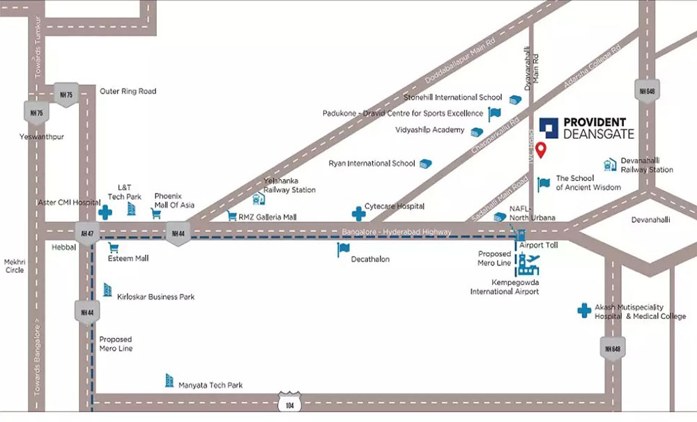 Provident Deansgate enjoys a strategic location with excellent connectivity to major IT hubs, business centers, and educational institutions. Residents benefit from proximity to shopping complexes, healthcare facilities, and entertainment options. Well-connected roads and public transport make commuting smooth, while the surrounding green spaces and peaceful neighborhood add to a balanced and convenient lifestyle.
