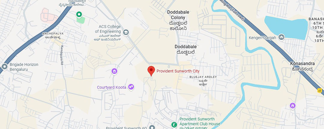 Provident Sunworth City is strategically located in Kambipura, near Bangalore’s South-West corridor, offering excellent connectivity to major IT hubs, Mysore Road, NICE Road, and the upcoming metro network. The project is close to reputed schools, hospitals, shopping centres, and entertainment facilities, ensuring convenience for daily life. With proximity to green spaces and a peaceful environment, the location combines urban accessibility with a tranquil residential setting. The area’s rapid development and improving infrastructure make it an attractive choice for families seeking long-term value along with a comfortable lifestyle.