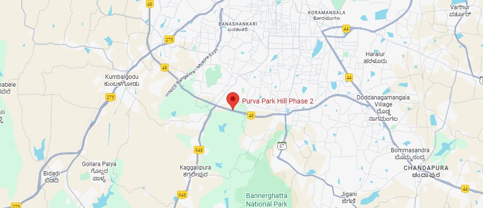 Location is a crucial element affecting many facets of business and human life. When choosing a place to live, start a business, or build a plot of land or apartment, accessibility, return on investment, and social environment are all influenced by location.Purva Park Hill is located Off. Kanakapura Main Road, South Bangalore, which is attached to NICE Ring Road on Kanakapura Main Road.