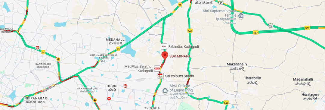 SBR Minara is strategically located in a well-connected and developing area, providing residents with excellent accessibility and convenience. The project is close to major IT hubs, commercial centers, and business districts, making it ideal for professionals. Reputed schools, colleges, and healthcare facilities are nearby, ensuring essential services are easily accessible. The area also features shopping complexes, supermarkets, and recreational options, enhancing daily lifestyle convenience. With smooth road connectivity and easy access to public transportation, SBR Minara offers a prime location that combines modern urban living with comfort, connectivity, and a serene environment.