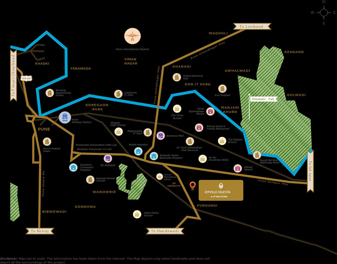 Joyville Celestia enjoys a strong location advantage in the Shewalewadi area of the Hadapsar Annexe, which is part of East Pune. The project is located just off the Pune–Solapur Highway, providing very good connectivity to major road networks and easing access to other parts of the city.