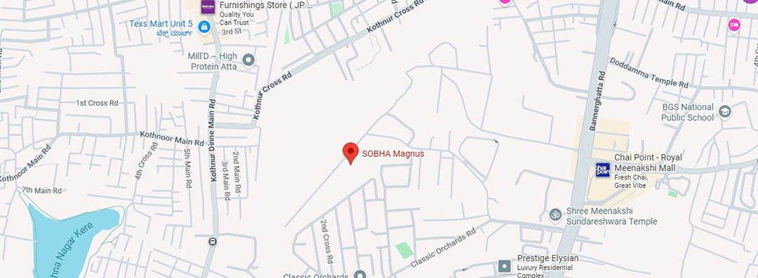SOBHA Magnus is strategically located on Bannerghatta Road, offering excellent connectivity to key parts of Bangalore, including IT hubs, business districts, and major transport routes. The area is well-served by reputed schools, hospitals, shopping centers, and entertainment options, ensuring residents have easy access to daily essentials. Its proximity to commercial zones and upcoming infrastructure developments enhances both convenience and long-term investment value, making it an ideal choice for families and professionals seeking a modern and well-connected lifestyle.