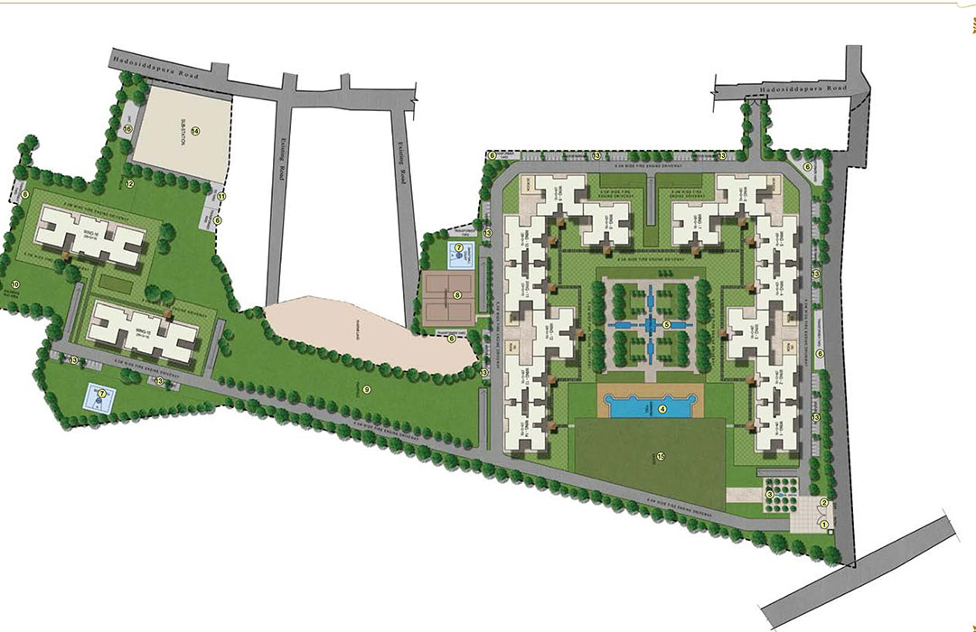 - Surrounded by green spaces and landscaped areas for a serene living environment.