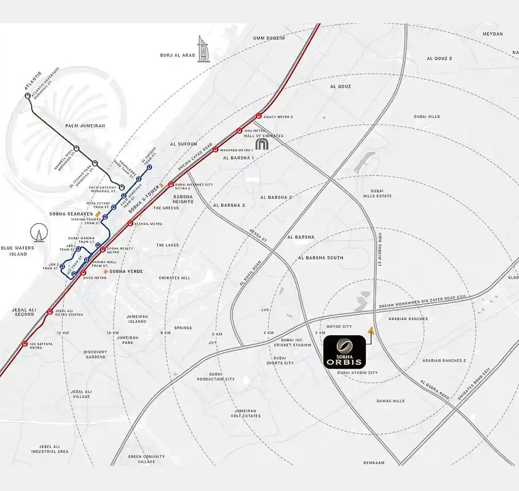 Sobha Orbis is a premium residential development by Sobha Realty located in Motor City, Dubai, spread across 12 acres. The project features modern high-rise towers with a focus on luxury and comfort, offering a wide range of resort-style amenities including swimming pools, landscaped gardens, sports courts, a clubhouse, and spaces for yoga and relaxation. Thoughtfully designed with sustainable features and smart home integration, Sobha Orbis provides a serene, green living environment while maintaining excellent connectivity to key roads and landmarks in Dubai. The project combines contemporary architecture with a community-oriented lifestyle, making it ideal for residents seeking a balanced mix of luxury, convenience, and leisure.