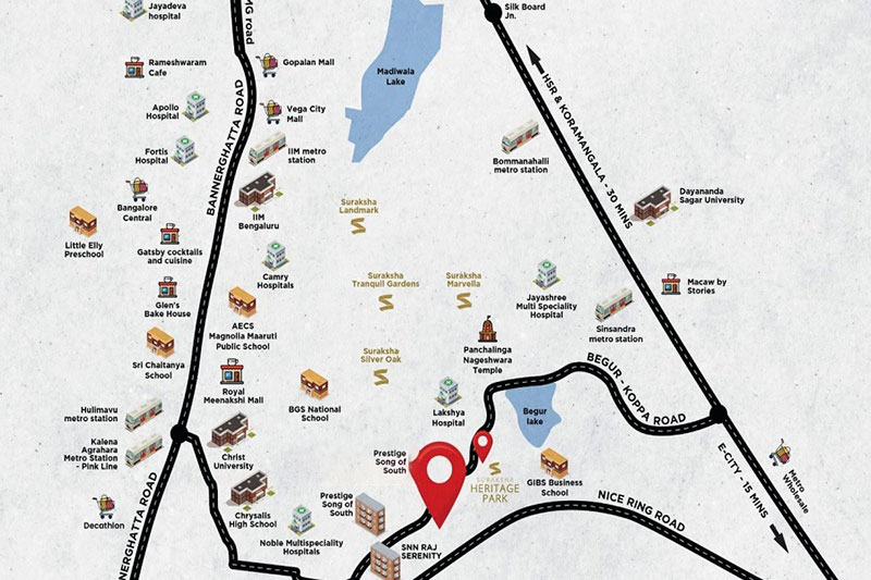 Suraksha Springs is strategically located to offer residents a perfect blend of connectivity and convenience. The project enjoys easy access to major roads and highways, ensuring smooth commuting across the city. It is close to reputed schools, colleges, and healthcare facilities, making it ideal for families. Residents also benefit from nearby shopping centers, restaurants, and entertainment options. With proximity to IT hubs and business centers, along with a peaceful and green environment, Suraksha Springs provides a modern lifestyle that balances work, leisure, and comfort.
