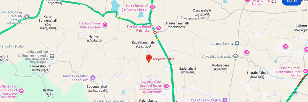 Surya Valencia is strategically located in a well-connected and rapidly developing area, ensuring both convenience and accessibility for its residents. The project offers easy access to major IT hubs, business centers, and commercial areas, making daily commute hassle-free for professionals. Reputed schools, colleges, and healthcare facilities are situated nearby, providing essential services within close reach.
